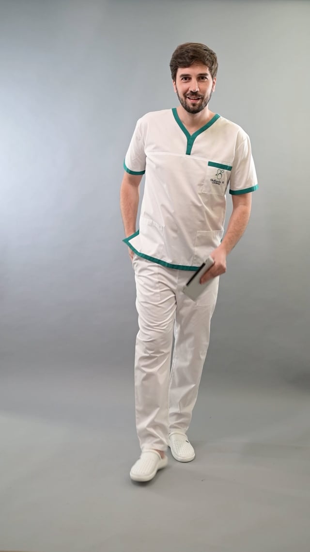 Bluza medicală JOHN este o alegere perfectă pentru confort si eleganță. Acest scrub medical este extrem de confortabil datorită modelului cu guler in forma de Y și a celor două șlițuri laterale. Un plus de confort este dat de țesătura din tercot de cea mai bună calitate, rezistentă la șifonare și la spălări repetate. Mișcările dumneavoastra în cabinetul medical vor fi semnificativ ușurate datorită buzunarelor laterale și a buzunarului de la piept, în care puteți păstra diverse obiecte, cum ar fi instrumentele de scris, ochelarii sau telefonul. Uniforma medicală se poate purta simplă sau puteți alege să purtați pe deasupra și un halat medical. Bluza medicală se poate personaliza prin brodare cu numele dumneavoastră sau cu logo-ul clinicii medicale pe care o reprezentați.
